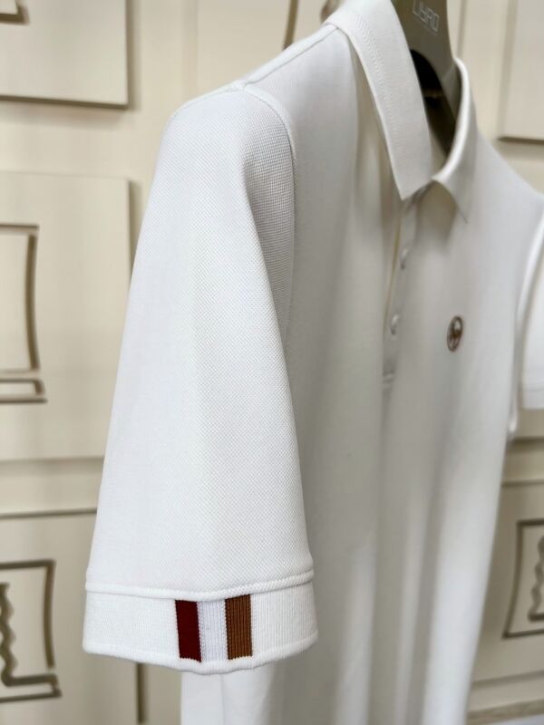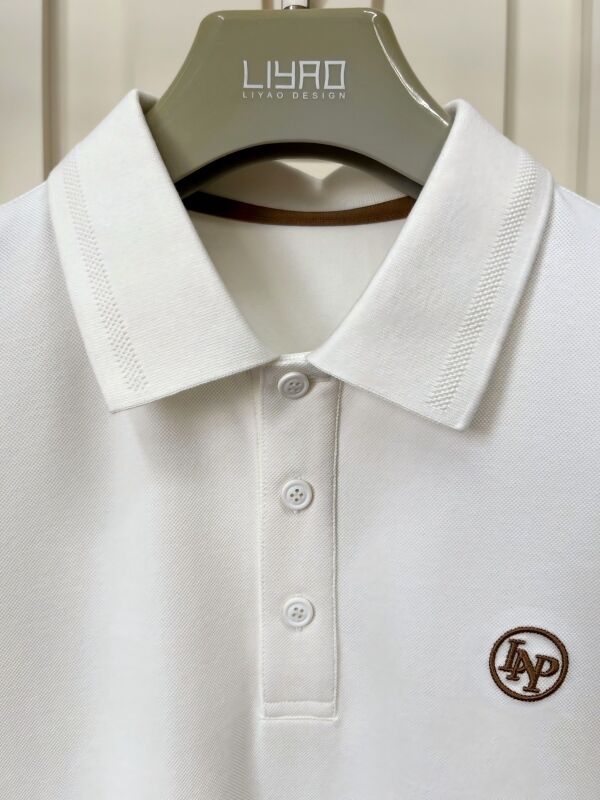 Collection Polo Homme Premium | Finition de poignet contrastée Blanc/Gris/Vert Broderie Exquise 14