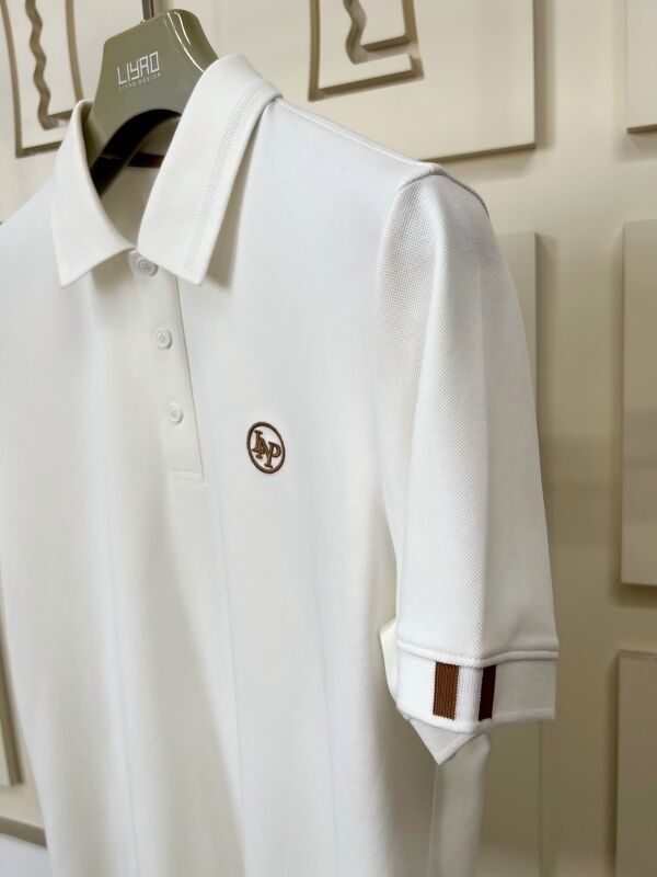 Collection Polo Homme Premium | Finition de poignet contrastée Blanc/Gris/Vert Broderie Exquise